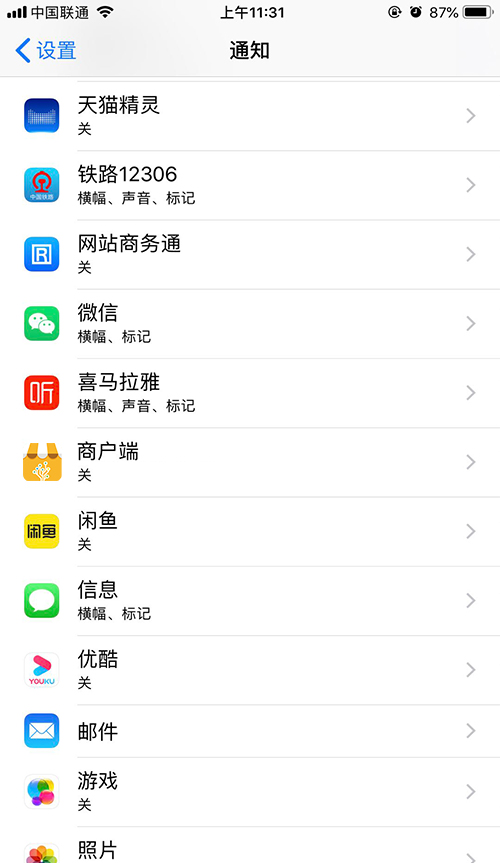 3、可以看到目前下列幾個APP的通知都是關(guān)閉狀態(tài),我們選擇其中一個APP進入